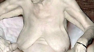 grannie with big boobs has fun