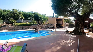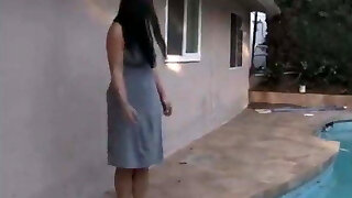 Smashing The Married Neighbors Booty In The Pool While The Cuckold Works