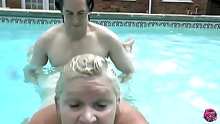 Two horny broads in the pool