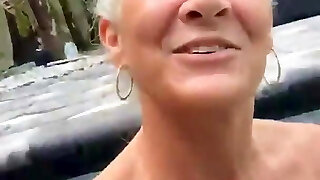 Light-haired Granny Gives Poolside Blowjob