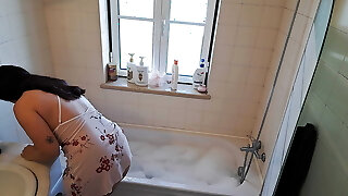 BEAUTIFUL SEXY CHUBBY GETS OUT OF THE SHOWER AND Demonstrates HER BIG TITS TO THE Step-father BY Video CALL
