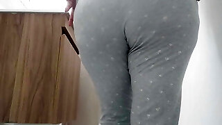 I find stepmom so sexy in a sweatpants that her fat pussy makes me horny. massaging, quickie, but I end up with a handjob
