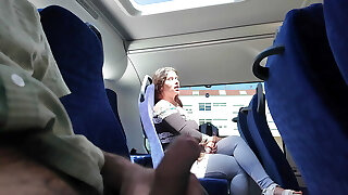 Exhibitionist seduces MILF to Suck & Masturbate his Wood in Bus until He Cums