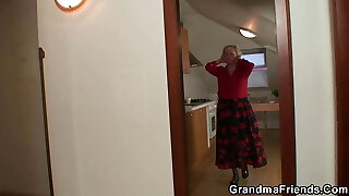 Kinky granny Astrid seduces horny Rob and fucks him wildly