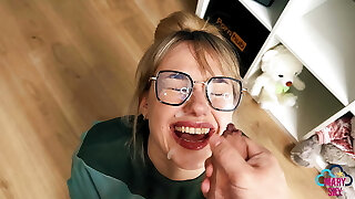 Sex-positive family! Stepfather Massively poured semen on my face. Deep throat