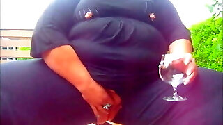Very big doll pissing on a glasses