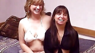 Mature light-haired strumpet and old dyke gal buddy get each other off in the bedroom
