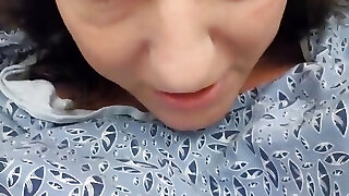 Elder and horny Asian mom sucking big dick in bathroom