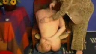 Aged mom spanks him and then fucsk him